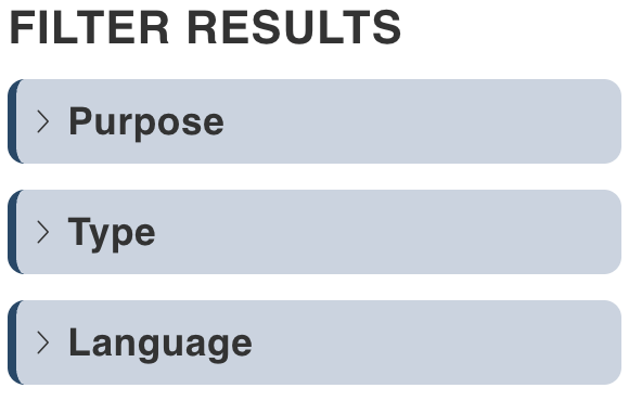 - When resources are displayed as a list, they show only the title, publication year, purpose, language, and cover page, if available.